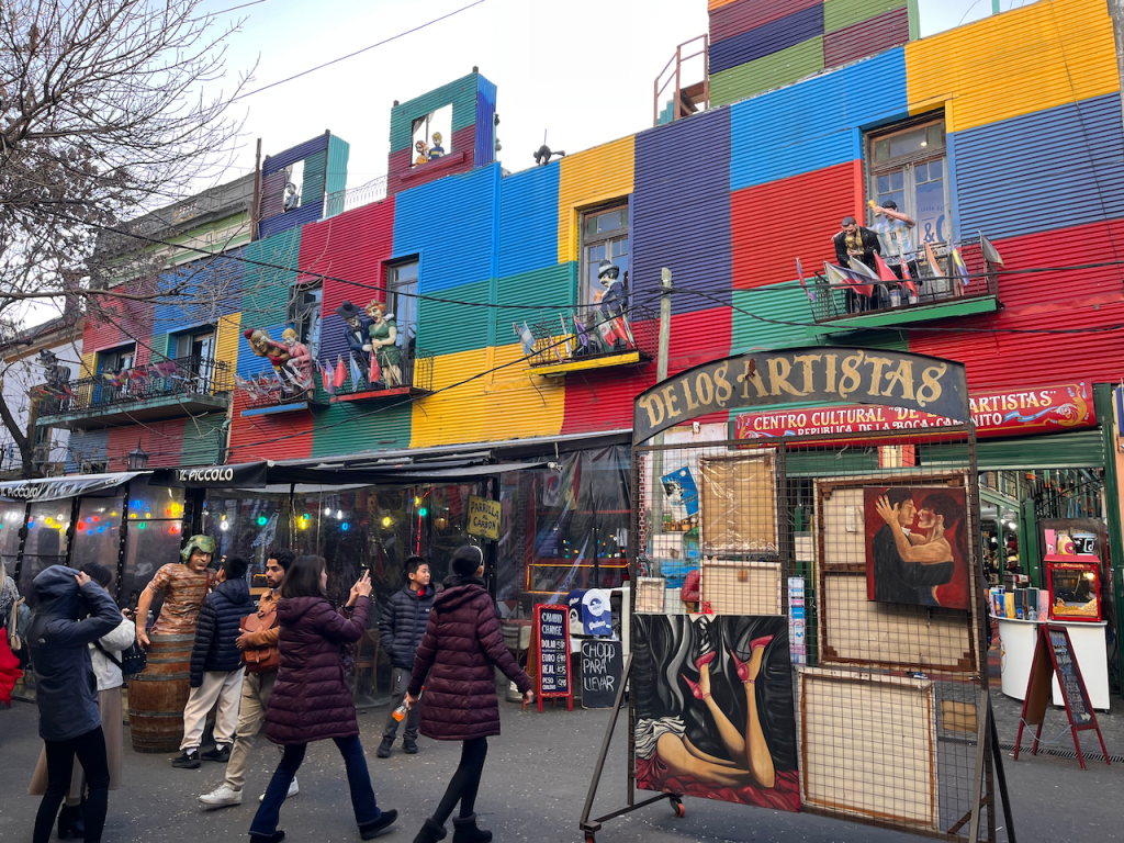 As I was exploring the area around my hotel in San Nicolas, somewhere in La Boca, street performers with caked-up makeup were dancing tango to impress tourists, and El Caminito — with its bright reds, yellows, greens, and blues — reluctantly photo bombed every picture and stole the show.